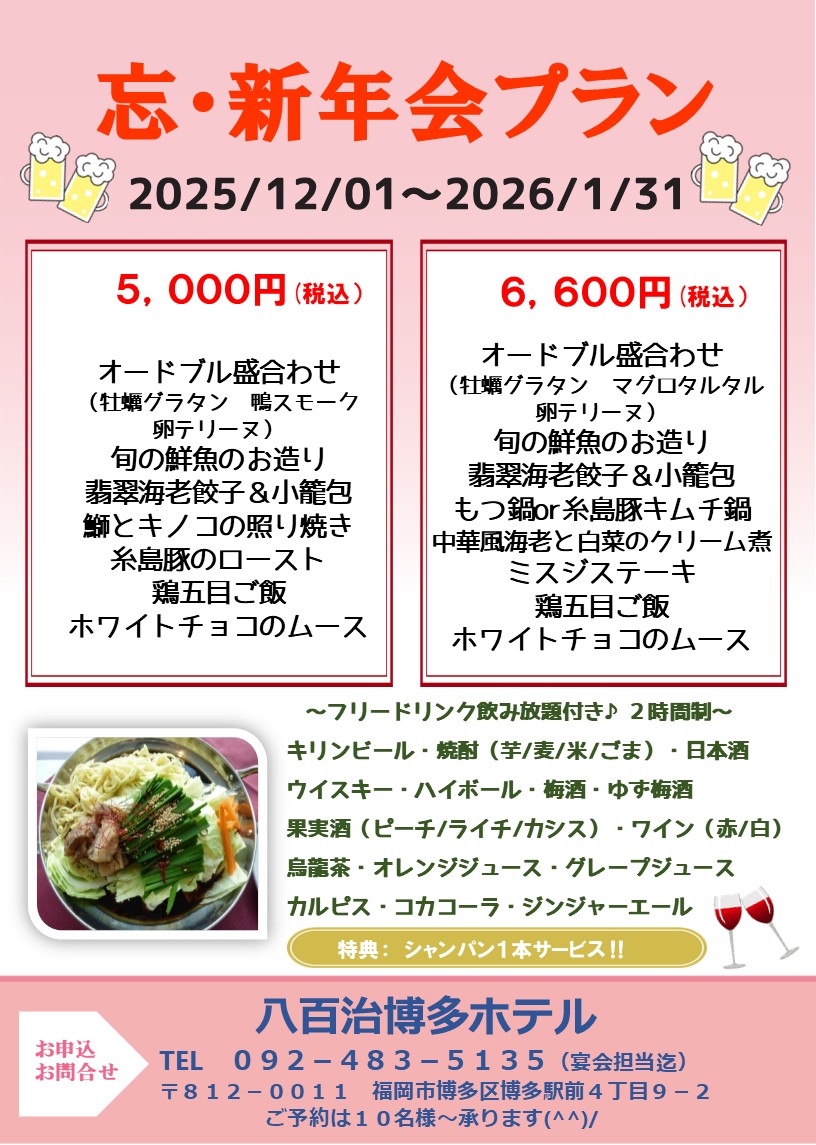 期間限定で【 忘・新年会プラン 】を開催いたします。